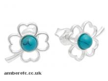 Shamrock 4 Leaf Sterling Silver Clover Dangly Stud Earrings with Amber £96.86