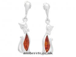 Cat series - Sterling Silver Dangly Stud Cats Earrings with Amber £125.21