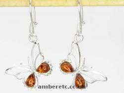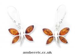 Sterling Silver Small Butterfly Drop Earrings with Amber £86.70