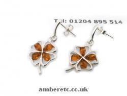Small Shamrock 4 Leaf Sterling Silver Clover Dangly Earrings with Amber £59.06