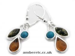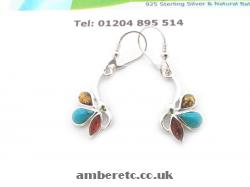 Silver Half Butterfly Drop Earrings with Amber and Turquoise £91.05