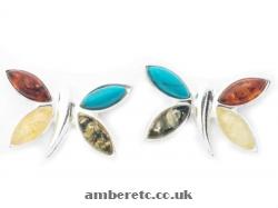 Silver Floral Leaf Design Stud Earrings With Amber and Turquoise £65.05