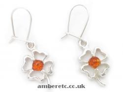 Sterling Silver Flower Bud Dangly Earrings with Amber £94.50