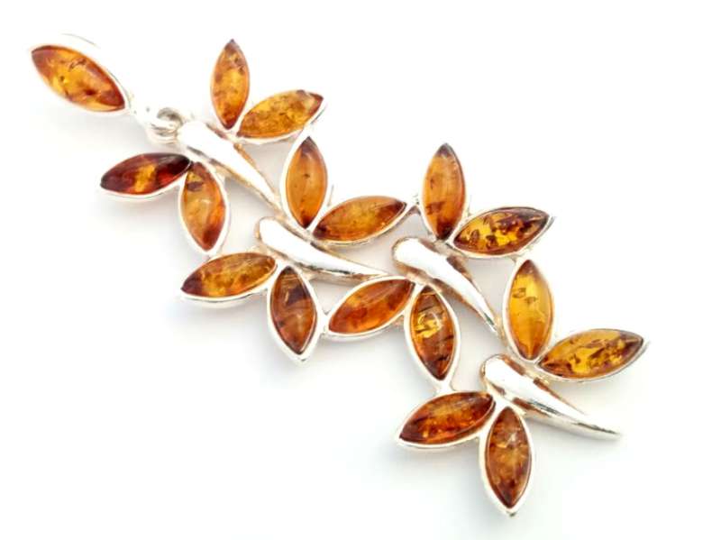 Beautiful 925 Sterling Silver 4 butterflies Pendant with Natural Baltic Amber.