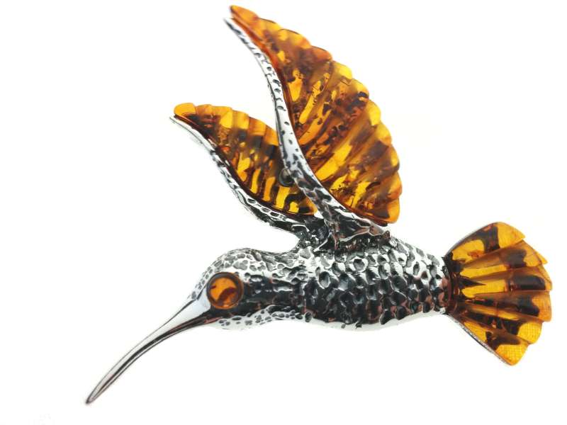 This beautiful large kingfisher pendant is made of Solid Sterling Silver and carefully selected and the highest quality Baltic Amber. The transparency of the amber wings, eyes, and tail creates a lovely orange glow as the light passes through.