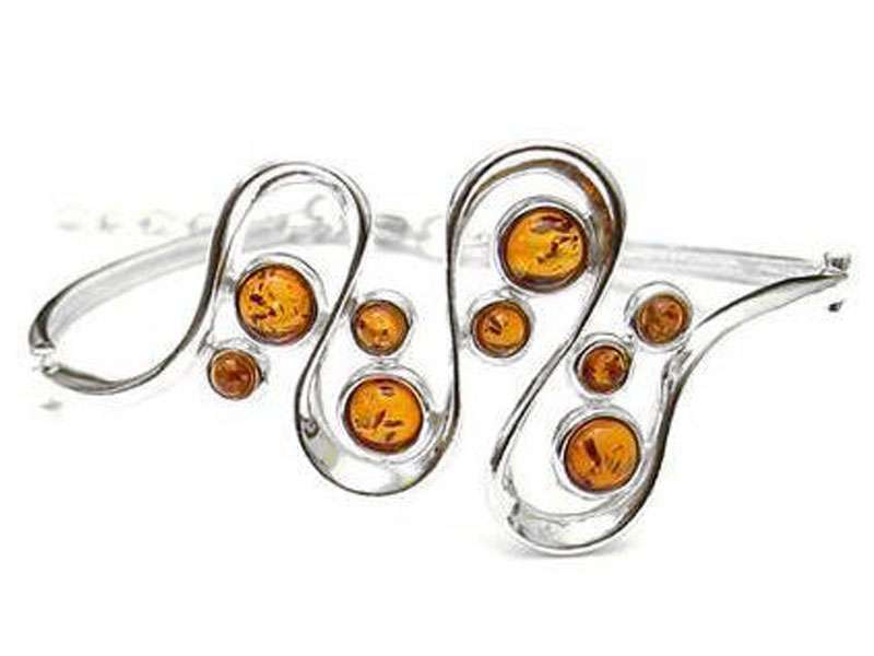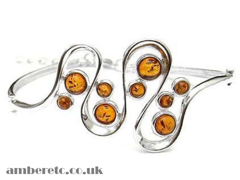 Beautiful 925 Sterling Silver Wave Design Bangle with Amber