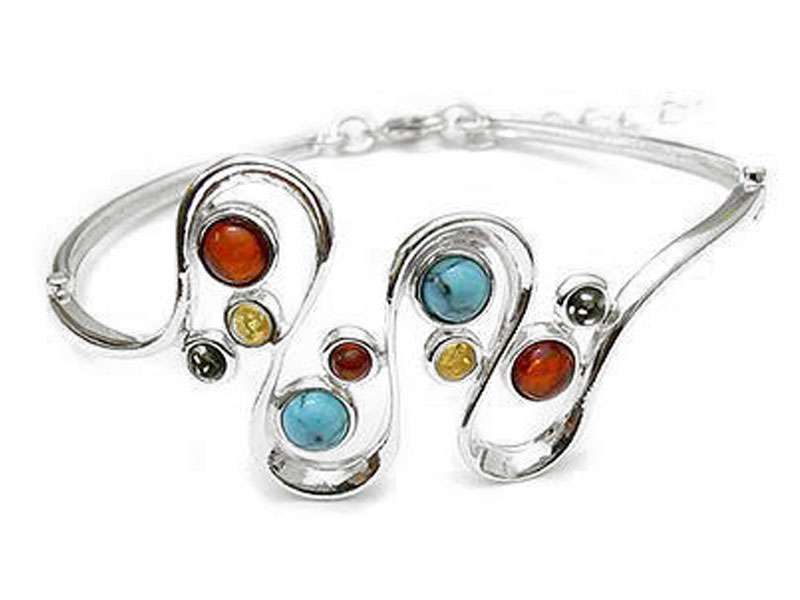 Stone arrangement: Cognac amber, green amber, yellow amber, & (RECO)Turquoise.