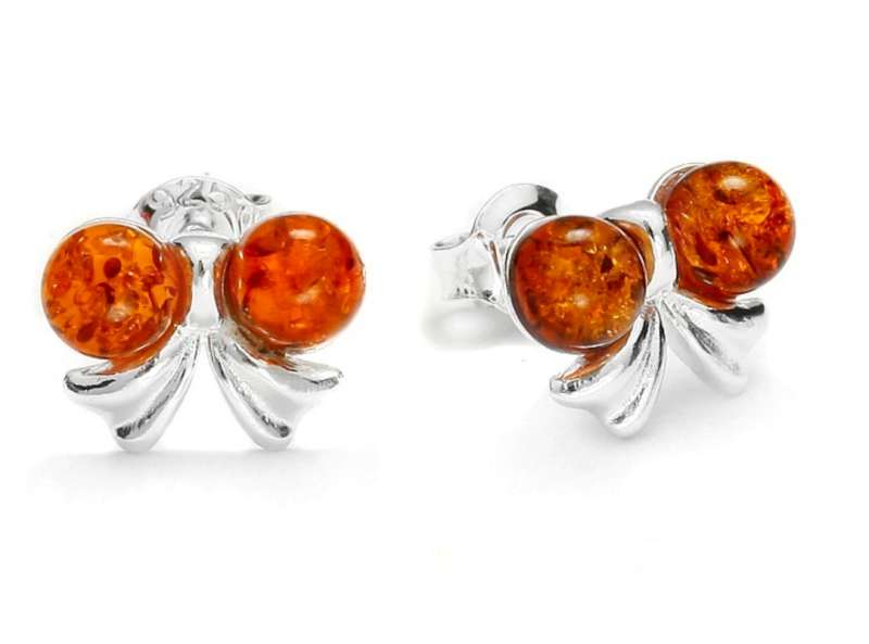 Bow Silver Earrings with Amber