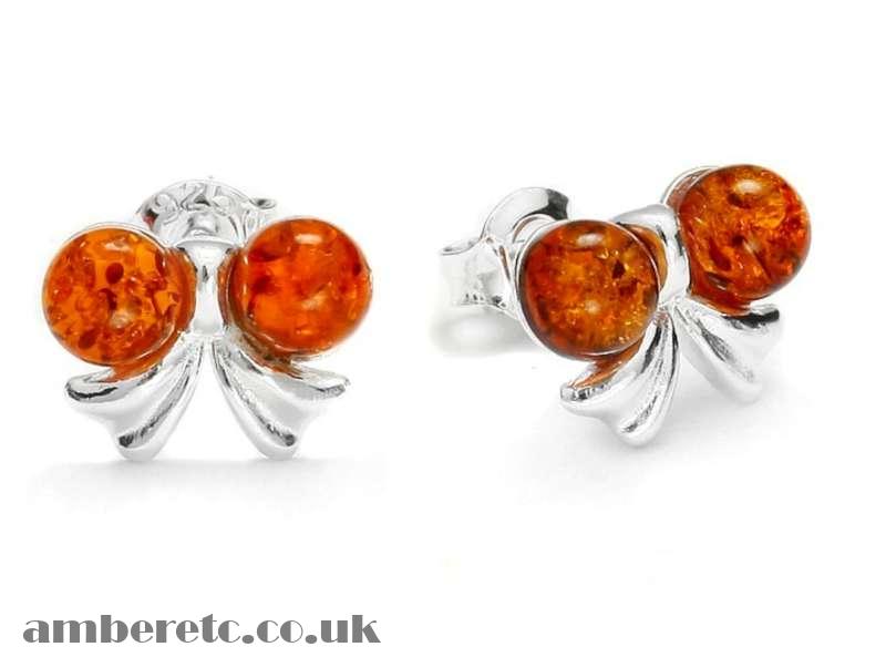 Beautiful 925 Sterling Silver Bow Earrings with Natural Baltic Amber.