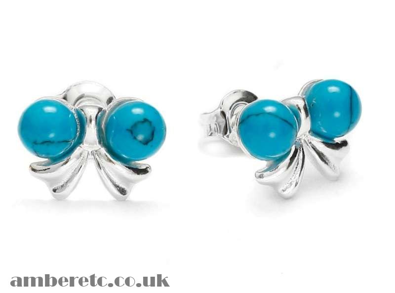 Beautiful 925 Sterling Silver Bow Earrings with Turquoise.