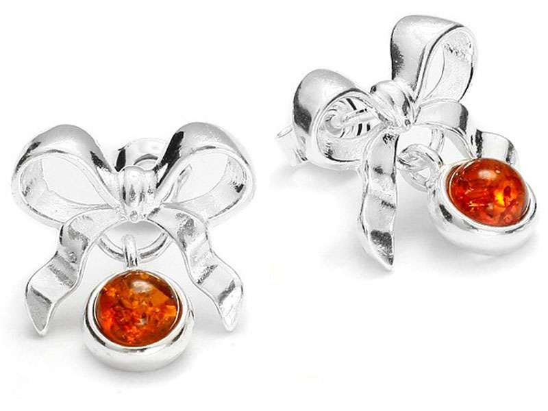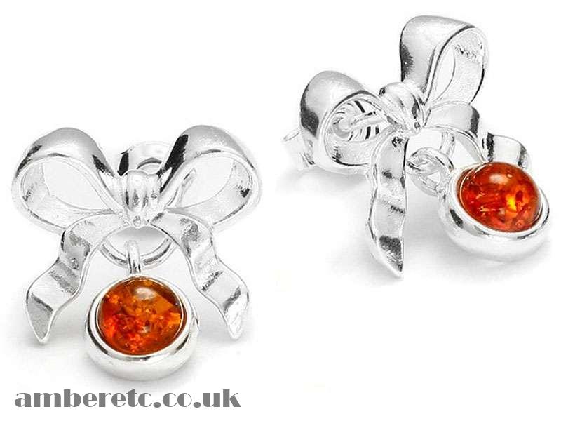 Beautiful 925 Sterling Silver Bow Tie Ribbon Earrings with Natural Baltic Amber.