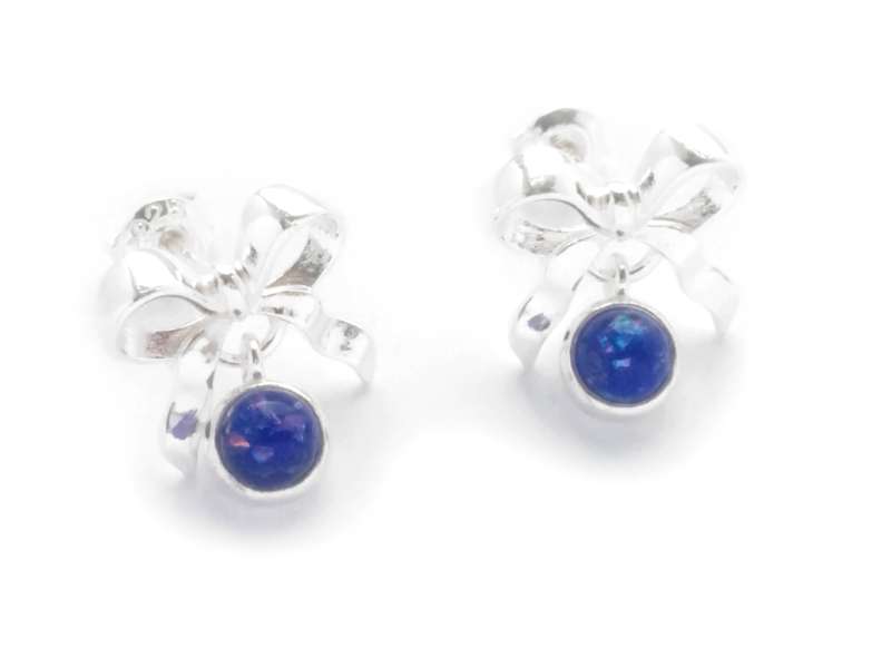Beautiful 925 Sterling Silver Bow Tie Ribbon Earrings with Opal.