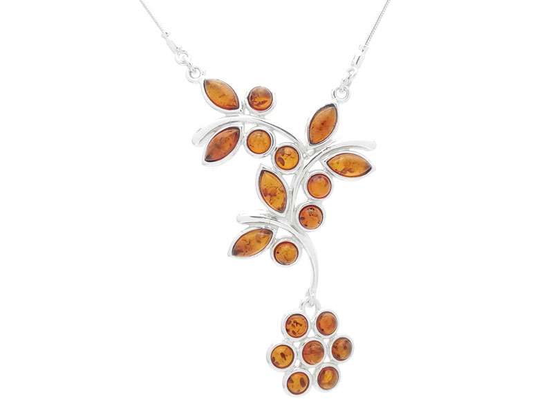Butterflies and Flower Silver Necklace with Amber