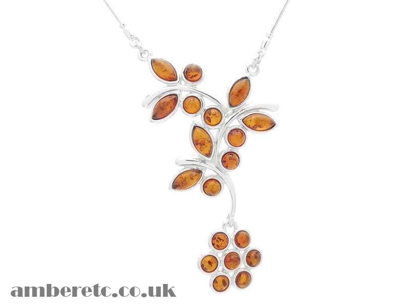 Beautiful 925 Sterling Silver Butterfly and Flower Necklace with Natural Baltic Amber.