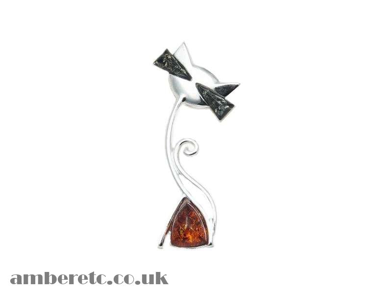 Beautiful 925 Sterling Silver Siamese Cat Pendant with Natural and Green Baltic Amber.