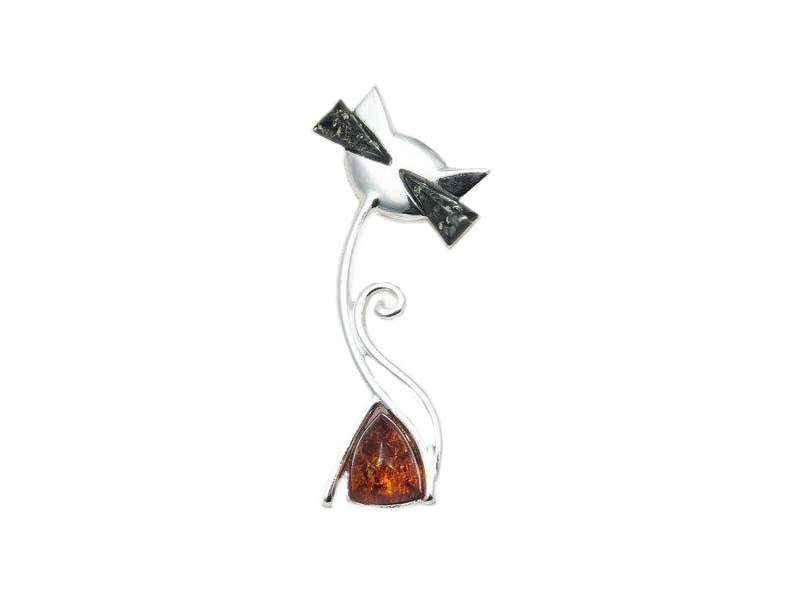 Cat series - Silver Siamese Cat Pendant with MultiColour Amber
