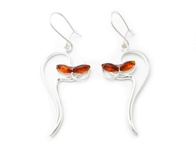 Beautiful 925 Sterling Silver Cat Earrings with Natural Baltic Amber.