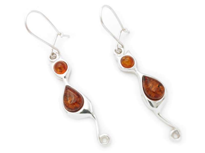 Beautiful 925 Sterling Silver Cat Earrings with Natural Baltic Amber.