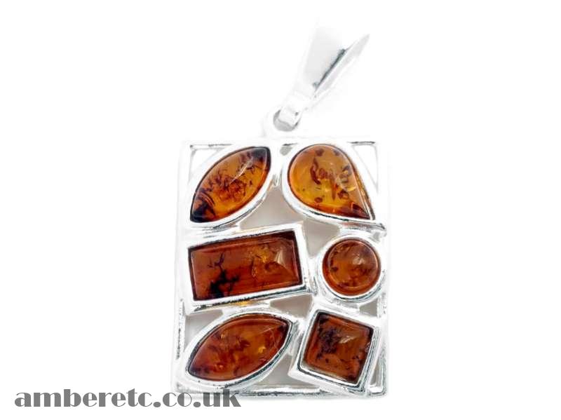 Beautiful 925 Sterling Silver Contemporary Rectangular Pendant with Natural Baltic Amber.