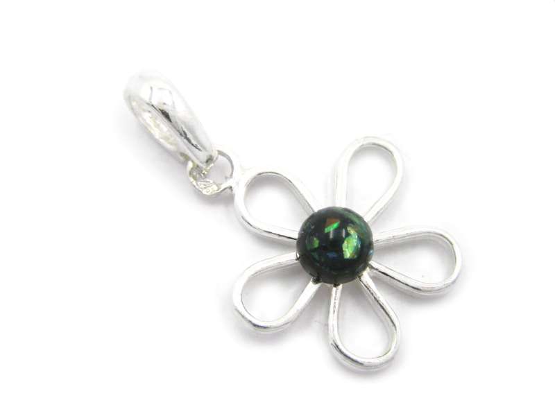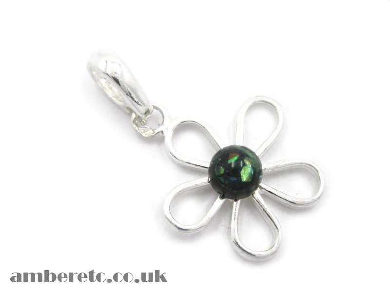 Beautiful 925 Sterling Silver Daisy Pendant with Green Opal.