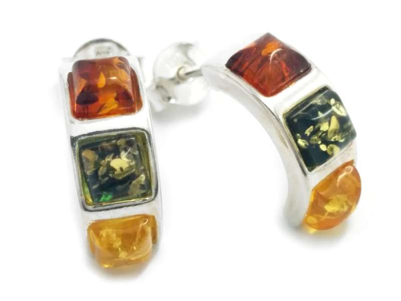 Beautiful 925 Sterling Silver Half Moon Stud Earrings with Natural Baltic Amber in Multi.