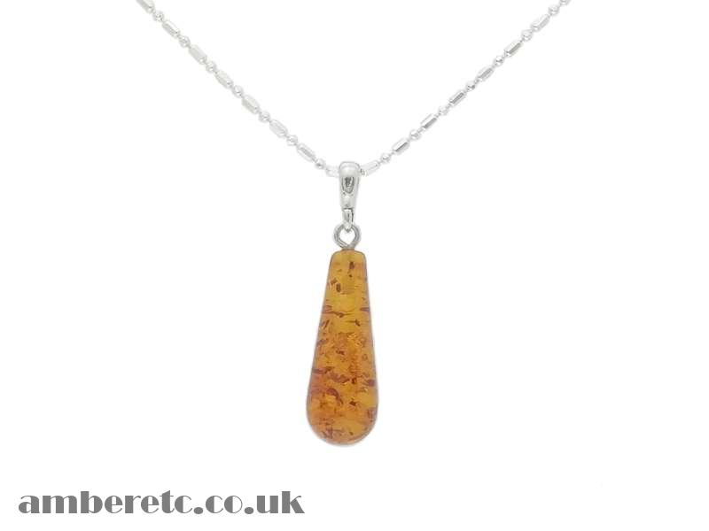 Beautiful silver pendant with natural Baltic amber stone shaped like a teardrop.