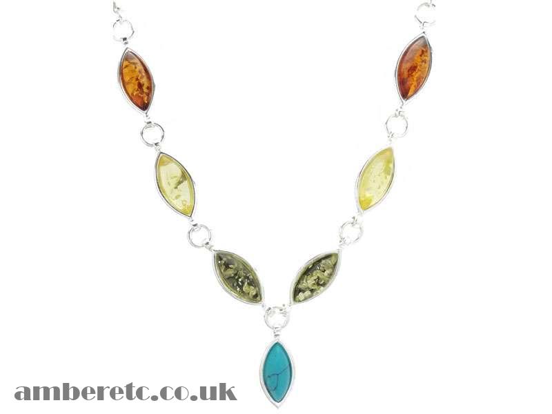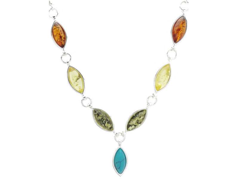 Stone arrangement: Cognac amber, green amber, yellow amber, (RECO)Turquoise.