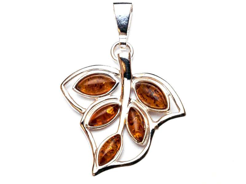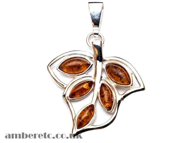 Beautiful 925 Sterling Silver Leaf Pendant with Natural Baltic Amber.