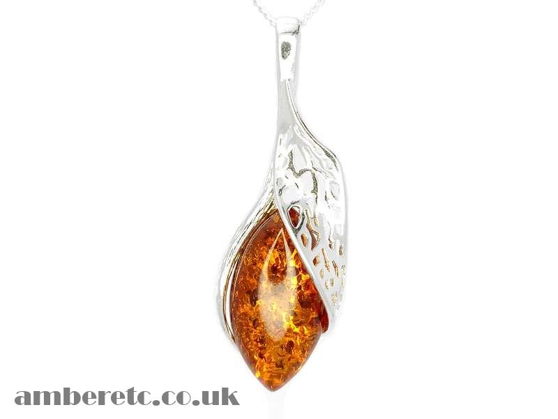Beautiful 925 Sterling Silver Organic Look Pendant with Natural Baltic Amber.