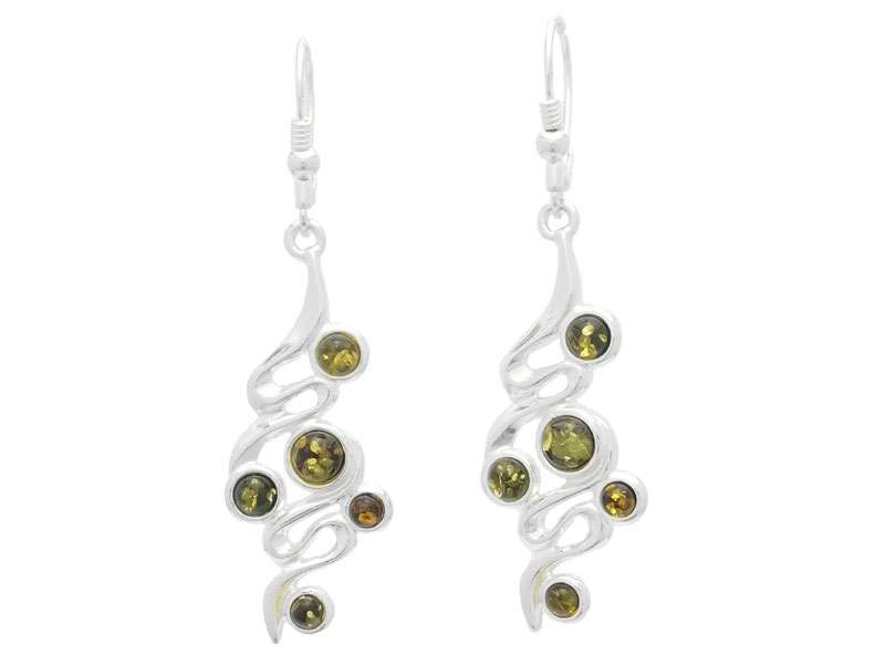 Modern Twist Silver Earrings with Green Amber AMB0671