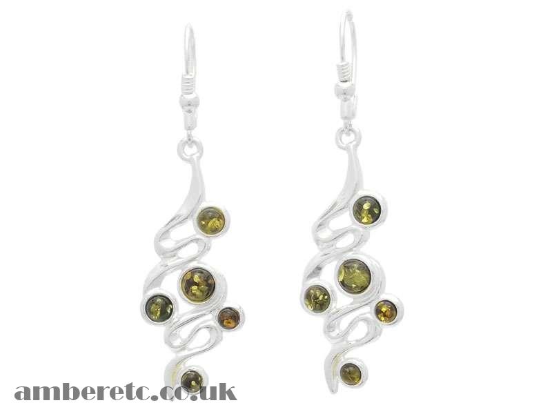 Beautiful 925 Sterling Silver Drop Earrings with Green Baltic Amber.