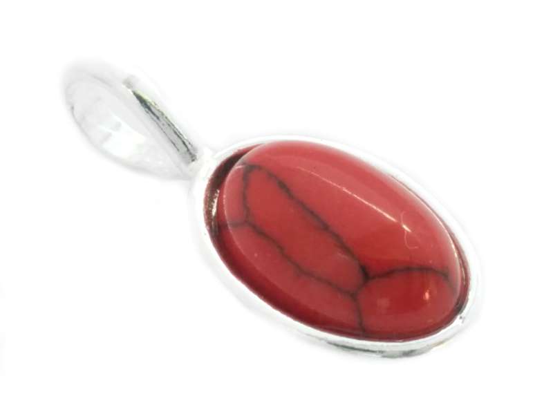 Plain Oval Silver Drop Pendant with Coral