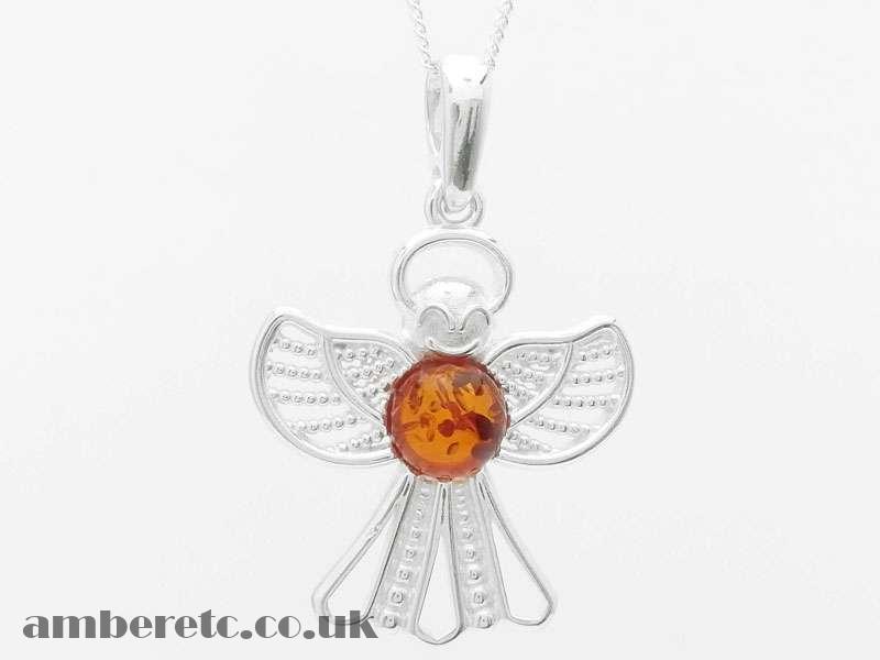 Beautiful 925 Sterling Silver Angel Pendant with Natural Baltic Amber.
