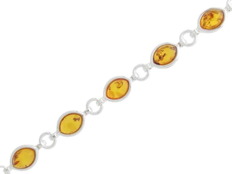 Silver Bracelet with Oval Marquee Shape Amber Stones