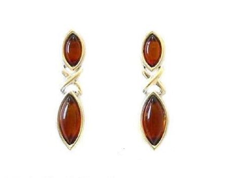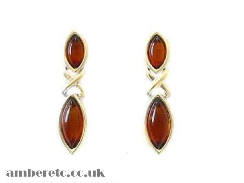Beautiful 925 Sterling Silver Celtic Style Stud Earrings with Natural Baltic Amber.