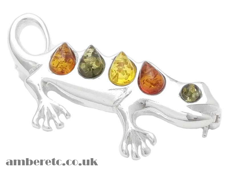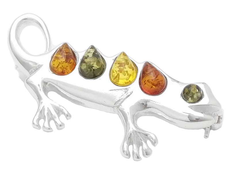 All-round nice little lizard brooch with three colours of Baltic amber.