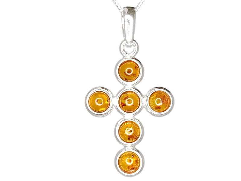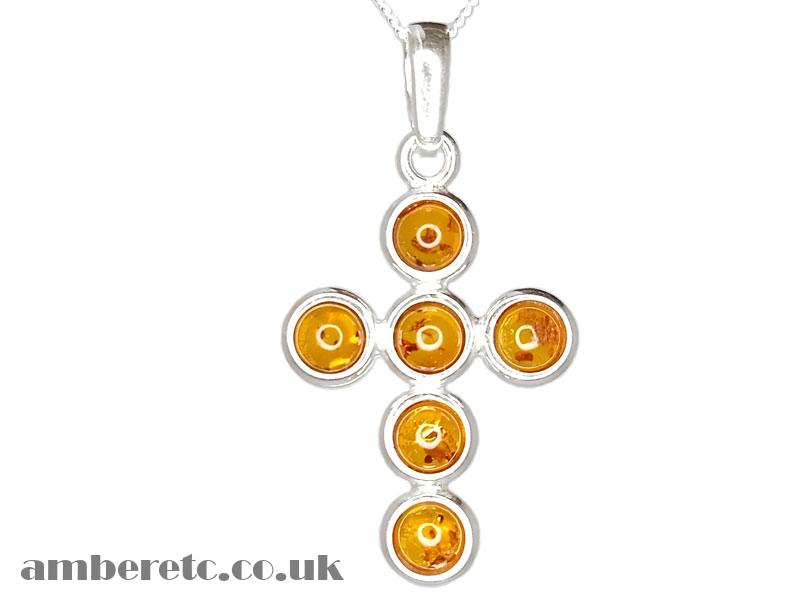 Beautiful 925 Sterling Silver Cross Pendant with Round Shaped Baltic Amber.