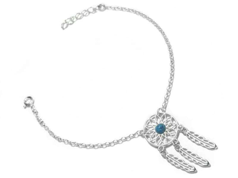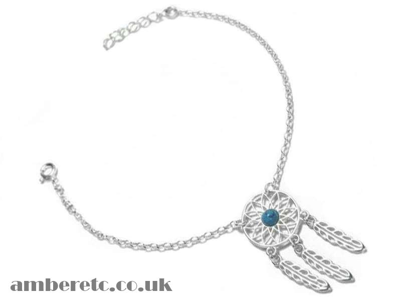 Beautiful 925 Sterling Silver Dreamcatcher Bracelet with Turquoise.