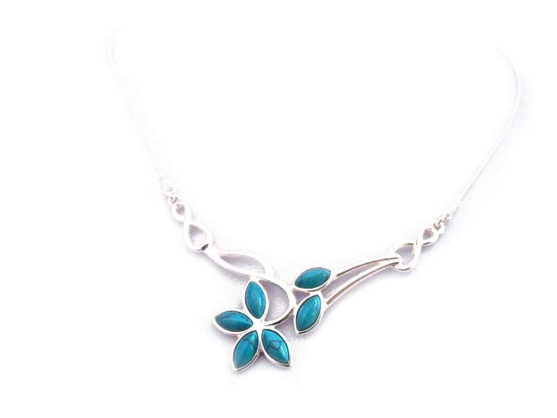 Beautiful 925 Sterling Silver Flower and Leaf Necklace with Turquoise.