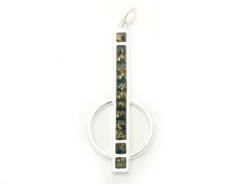 Silver Long Pendant with Amber Green