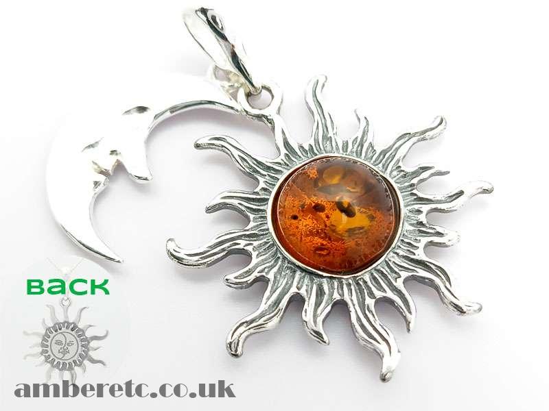 Beautiful 925 Sterling Silver Moon and Sun Mystic Pendant with Baltic Amber.