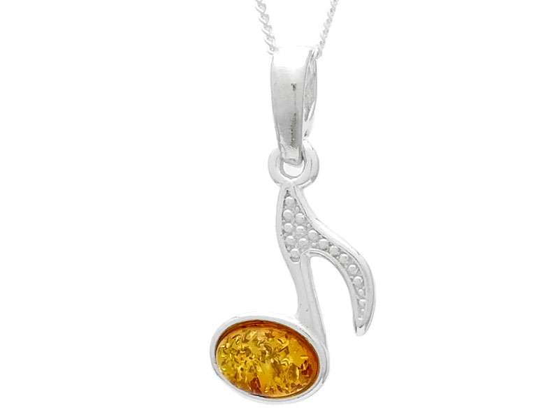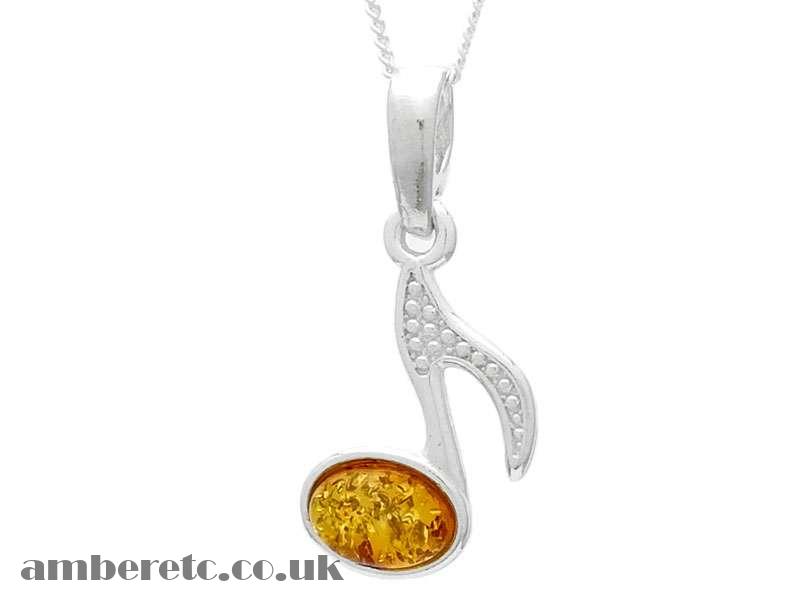 Beautiful 925 Sterling Silver Music Note Pendant with Natural Baltic Amber.
