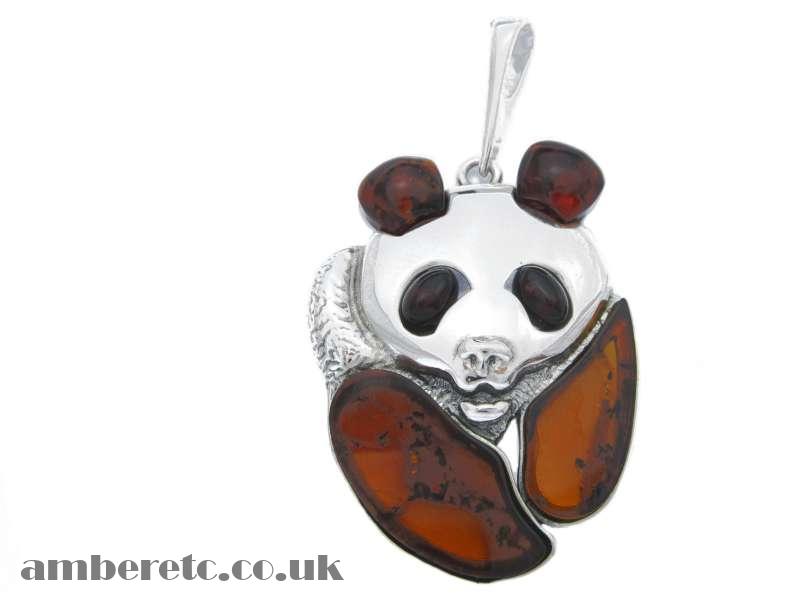 Beautiful 925 Sterling silver Panda Bear with Baltic Amber in the shade of cherry.