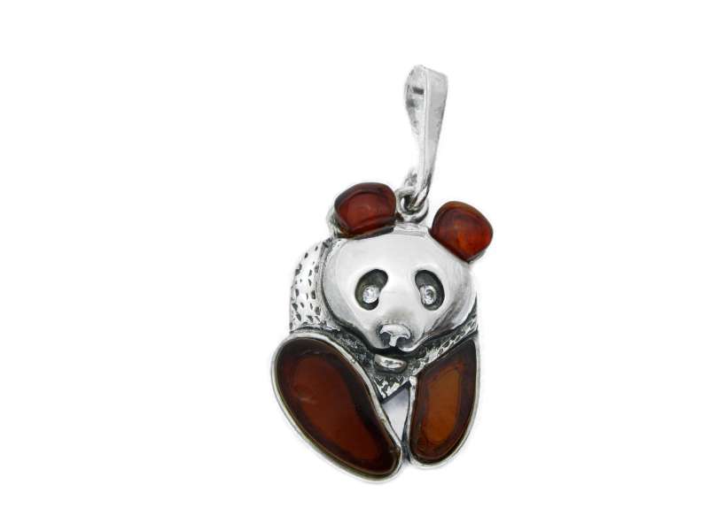 Four cherry Baltic amber stones and two cubic zirconias panda bear pendant.