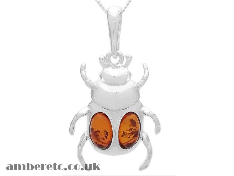 Beautiful 925 Sterling Silver Scarab Beetle Pendant with Natural Baltic Amber.