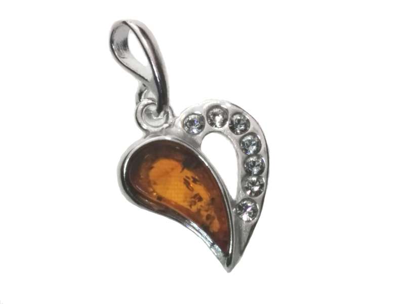 Silver Small Heart Pendant with Cherry Amber and CZ
