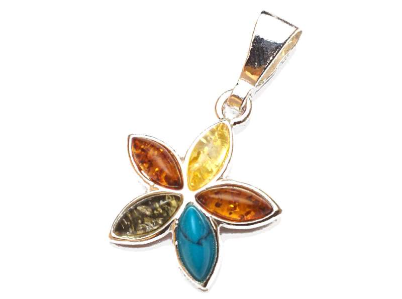 Silver Star Amber Pendant Multi and Turquoise