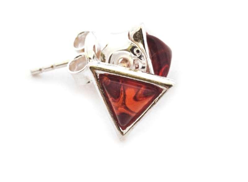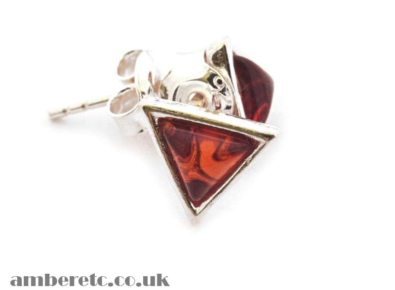 Beautiful 925 Sterling Silver Triangle Stud Earrings with Natural Baltic Amber.