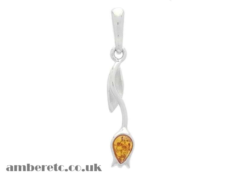 Beautiful 925 Sterling Silver Small Tulip Pendant with Natural Baltic Amber.
