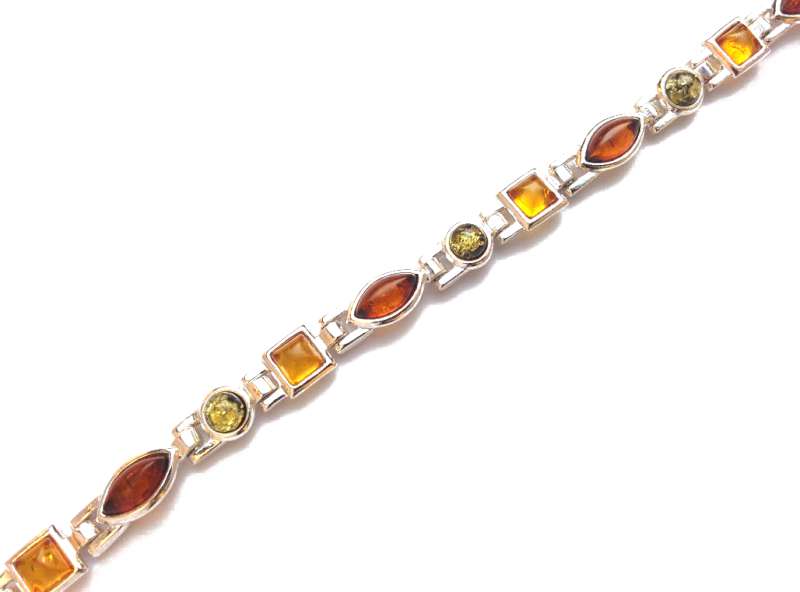 Sterling Silver 3 Links Bracelet with Amber Multi